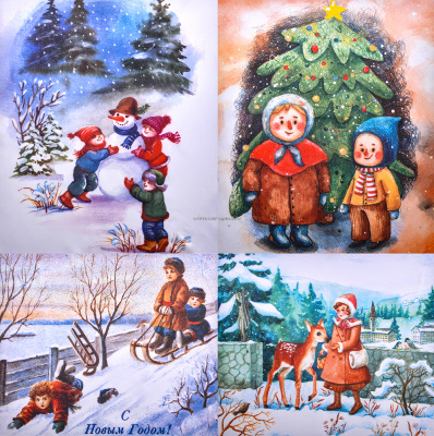 Салфетка из MF "УНИВЕРСАЛ" в индивидуальной упаковке (4шт.) Новый год-7 (15*18см)