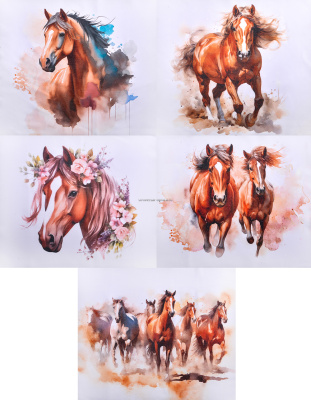 Салфетка из MF "УНИВЕРСАЛ" в индивидуальной упаковке (5шт.) Лошади-2 (15*18см)